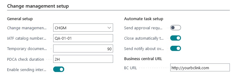 With the exception of the IATF catalog number, these are set by the system during installation, if you want to change them, you can do so here. You must enter the IATF catalog number. You have the option to turn off internal mail by turning off the "Enable internal mail" switch. In this case, the system will not send notification letters. This setting does not apply to letters of approval requests to be sent to the customer it must be sent from the app. This is because the system needs to manage background settings and know whether the customer approval request has been sent.