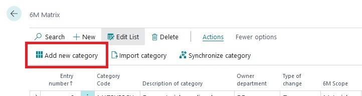 If you have the category codes, they must be imported into the 6M matrix so that we can assign the necessary tasks to them. Let's go back to the matrix form of the category by closing the page. At first launch, there will be no data here, so you have to import the categories. This can be done by pressing the "category import" button. (Red frame in the picture below) This function is everything data will be deleted from the matrix database.