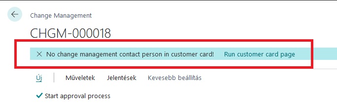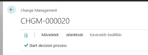 Continue processing the document started above by starting the approval process by clicking on the button shown in the image above. (F2 hotkey can also be used) This will start the approval process. The process may take a little time, because this is when internal notification letters are sent, if they are enabled. After the approval is started, the header, the description of the changes and the cost implications will not be editable. The system indicates the end of the startup with a message. The status of the document will change to "under approval" and the internal approval list will become editable for those who have decision rights.