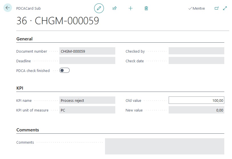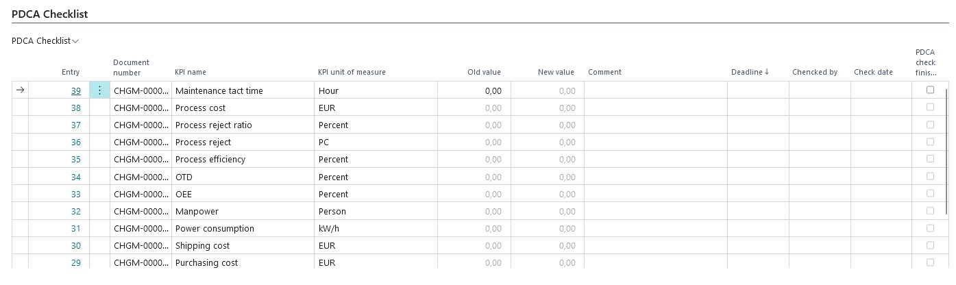 This list is used to check the effectiveness of the introduced change. When creating each new document, according to the KPI specified in the settings, the system creates a checklist that looks like this: