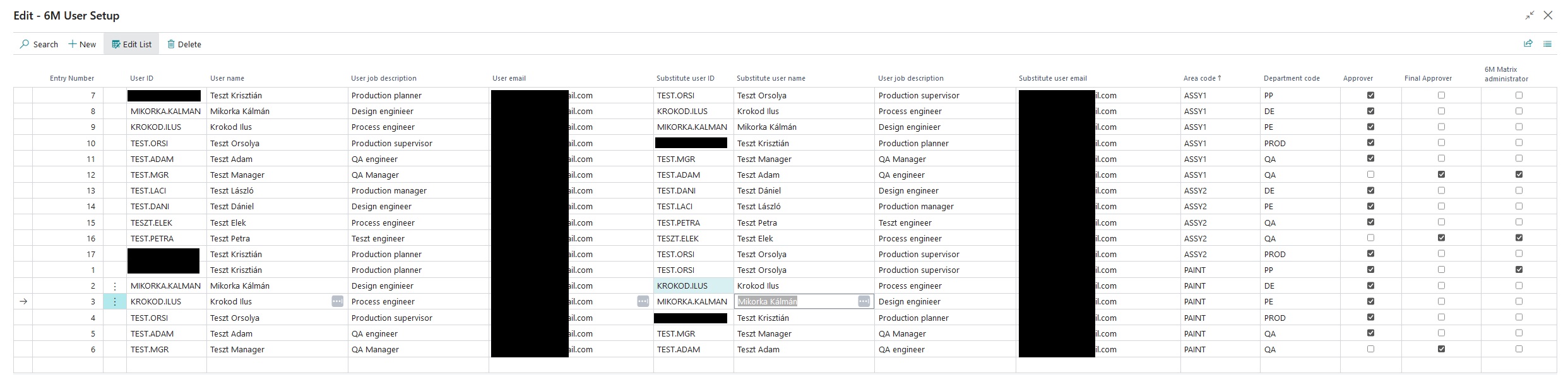 The users who will have decision-making rights and the manager (one per area) who will be the final decision-maker must be defined here. The app is structured in such a way that each person listed here must make a decision in relation to the document by area, this will be the basis of the "internal decision list". A substitute user must also be set up for everyone. The surrogate user has the right to make decisions on behalf of the user he is replacing. The users' email addresses must also be entered, because this is where the system's notification letters will go. Limitations:
